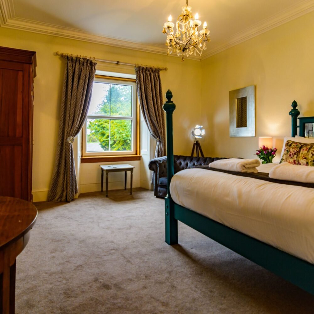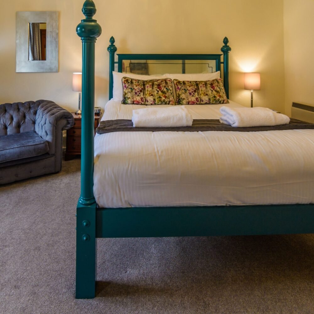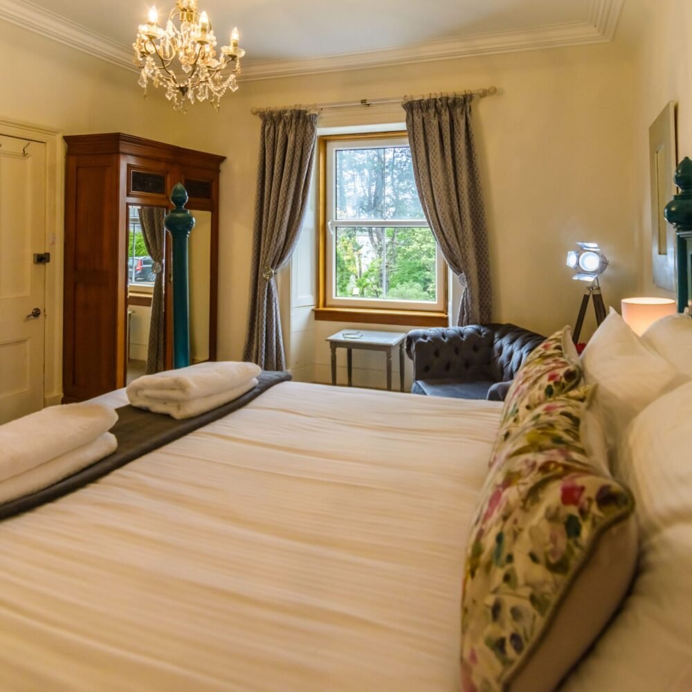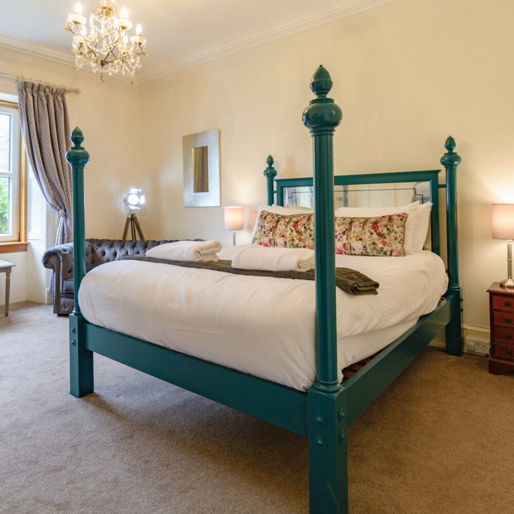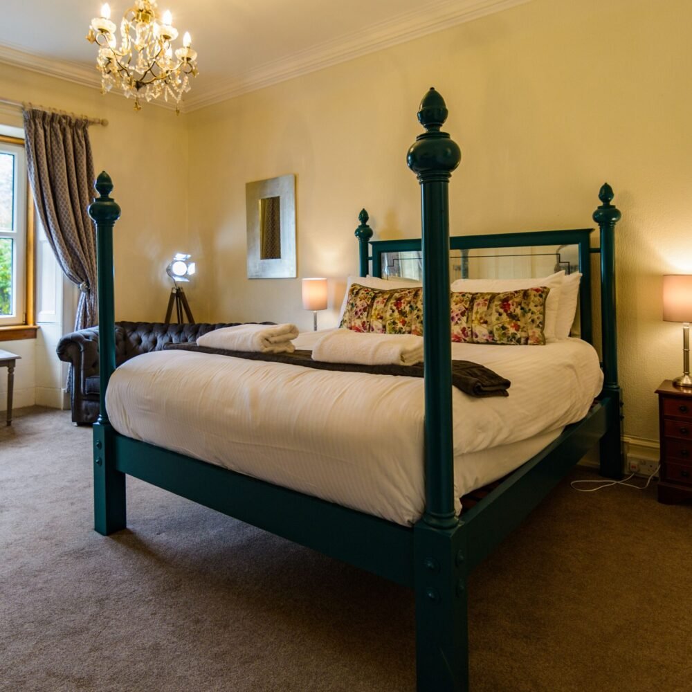 Four Poster Double room with full or partial loch views. TV, WiFi, tea/coffee making facilities. One of these rooms has a small sofa bed (this sofa bed only sleeps, 1 person). This room can also accommodate a cot. Bathroom with a shower or shower over the bath. NO PETS – unfortunately we cannot accommodate pets in the Deluxe rooms.