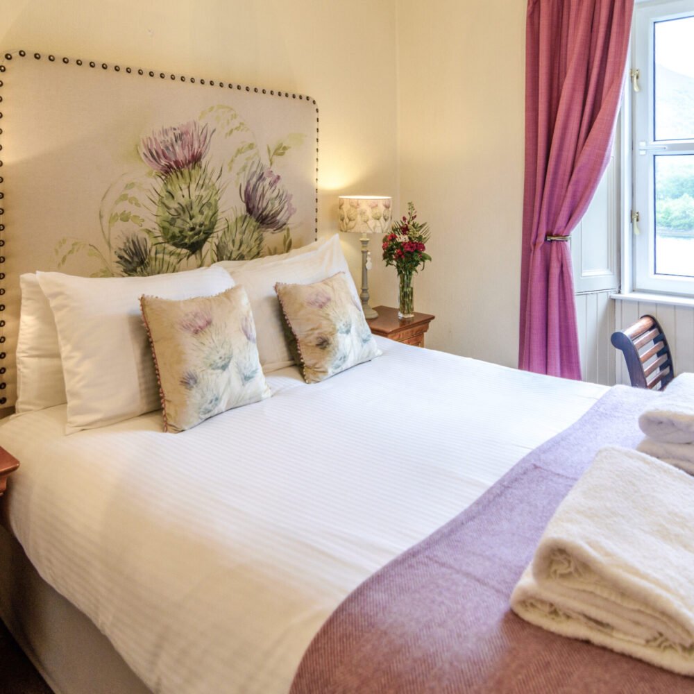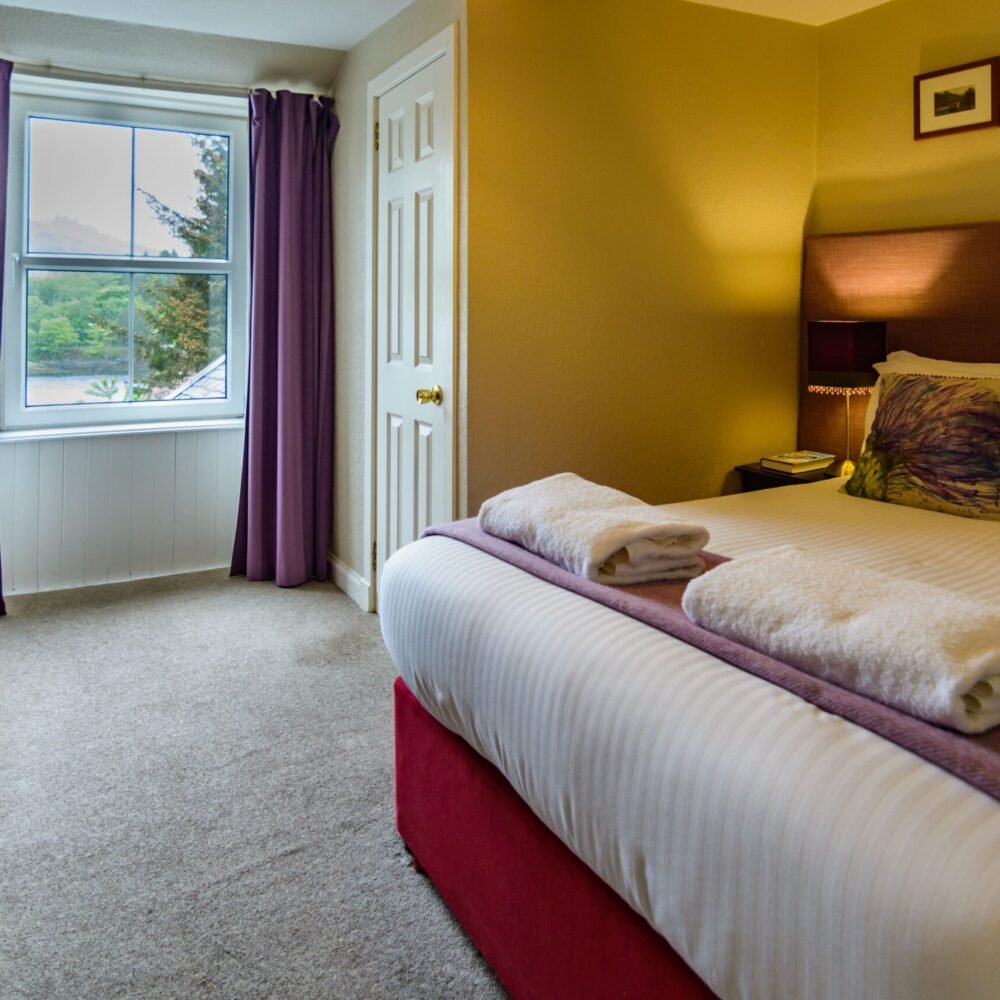 Loch View Double room, with a King size bed and en-suite bathroom featuring either a shower or shower over the bath. Views over the loch, TV, WiFi, tea/coffee making facilities.